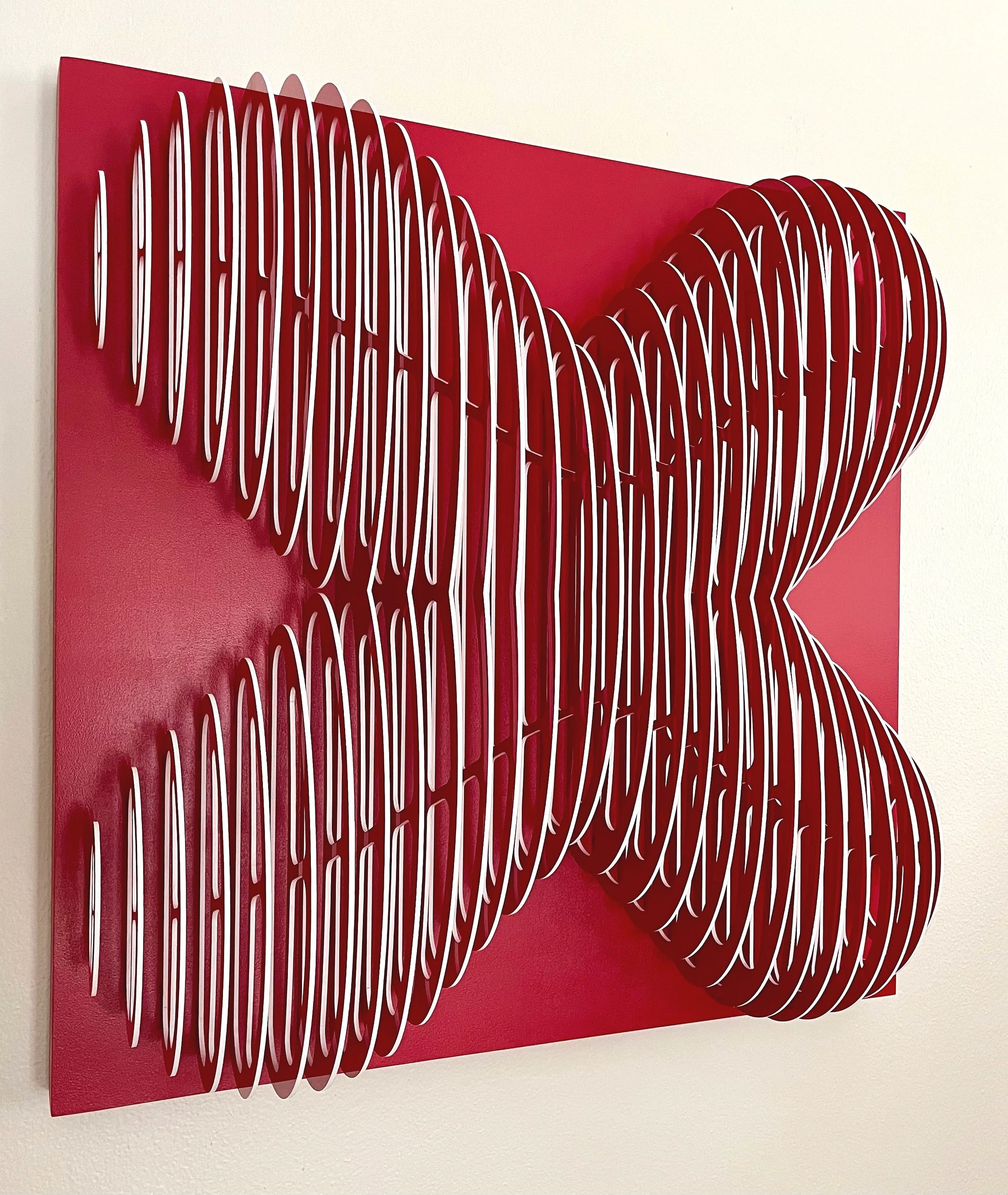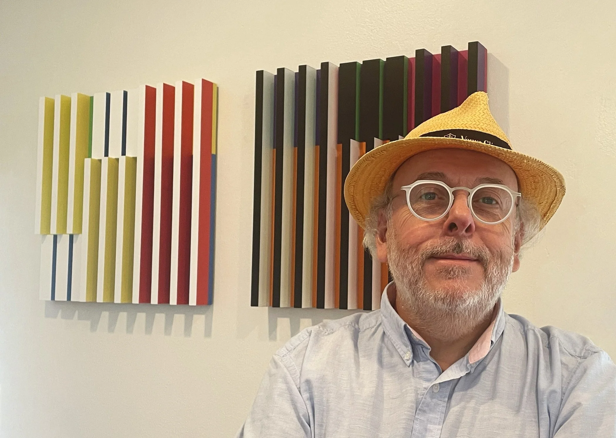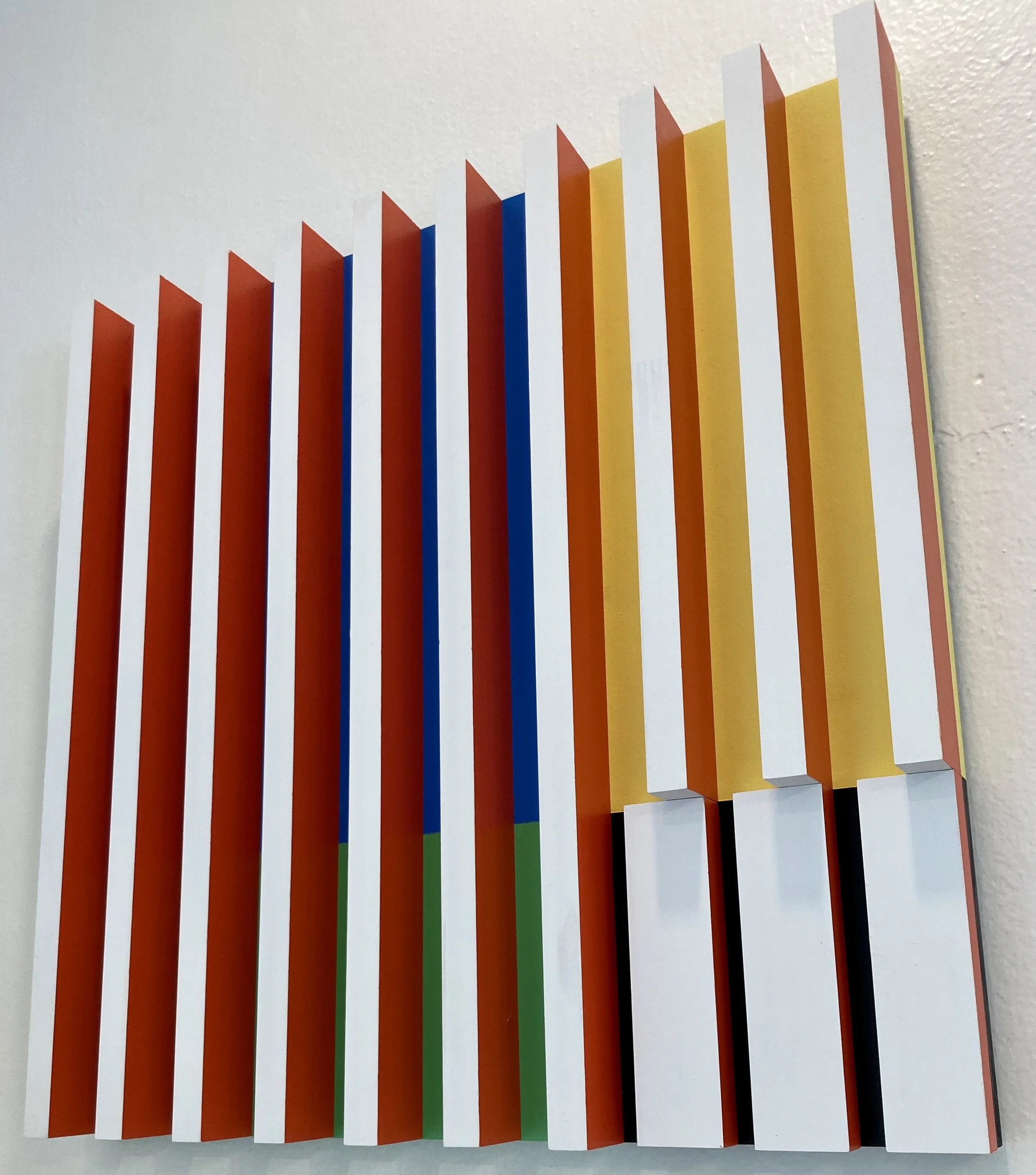 His artwork is a celebration of color, shape and movement. He uses a combination of wood and acrylic paint to create modern, vibrant pieces that explore the relationship between the natural and the man-made.