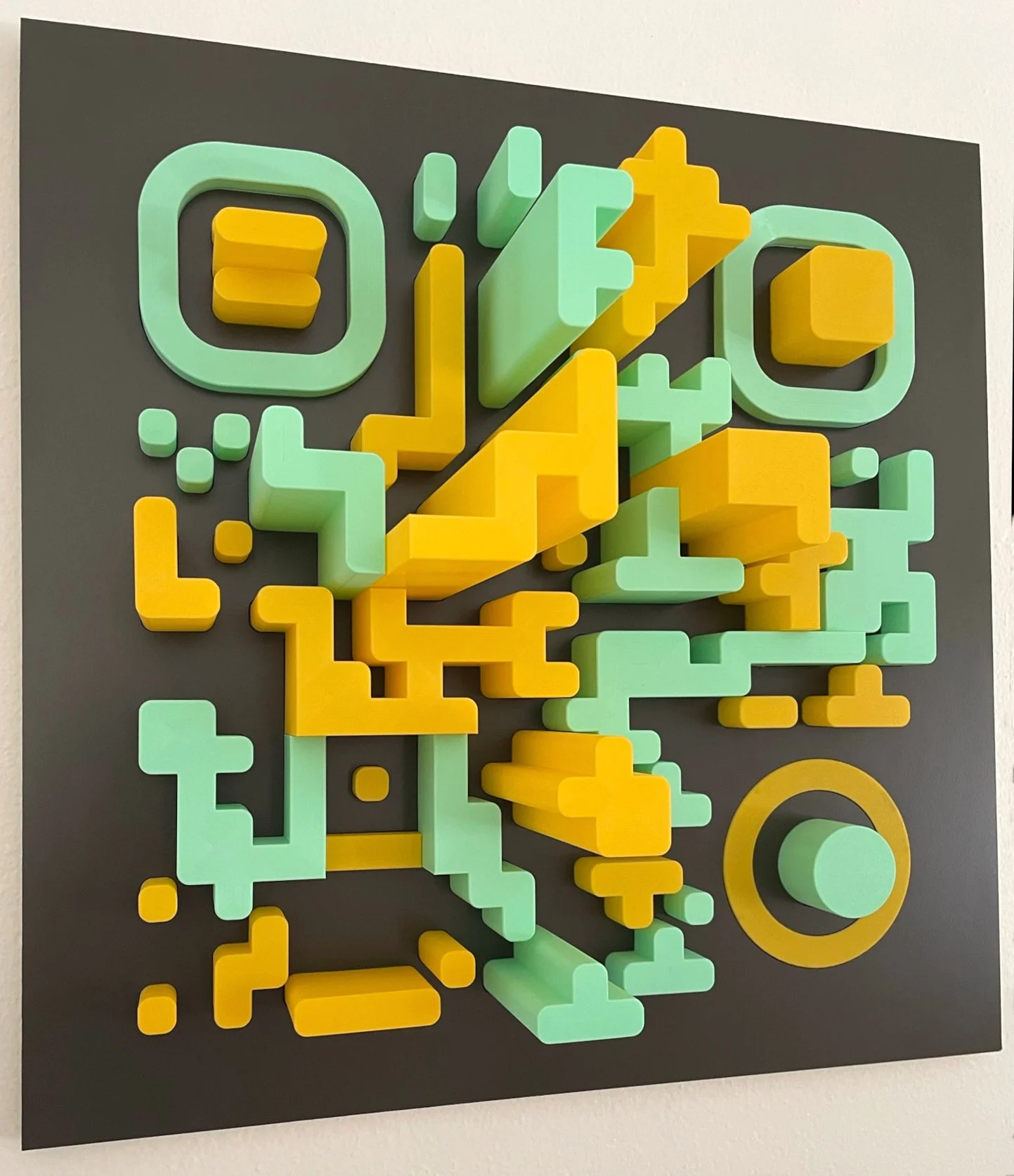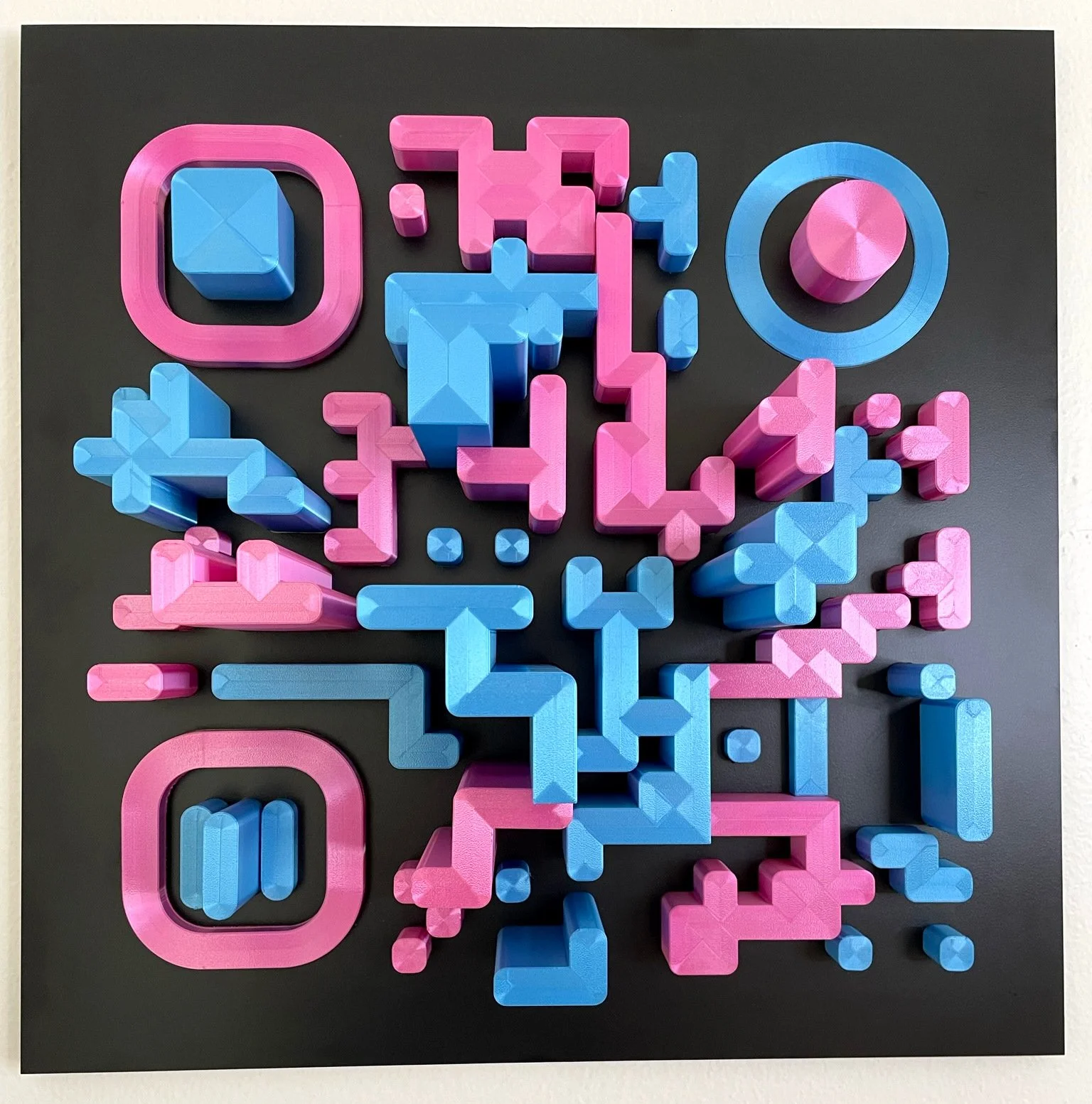 3D QR Code - Miami Vice colors - Large 20" x 20" - Wood and PLA (3D printed plastic) - 2022