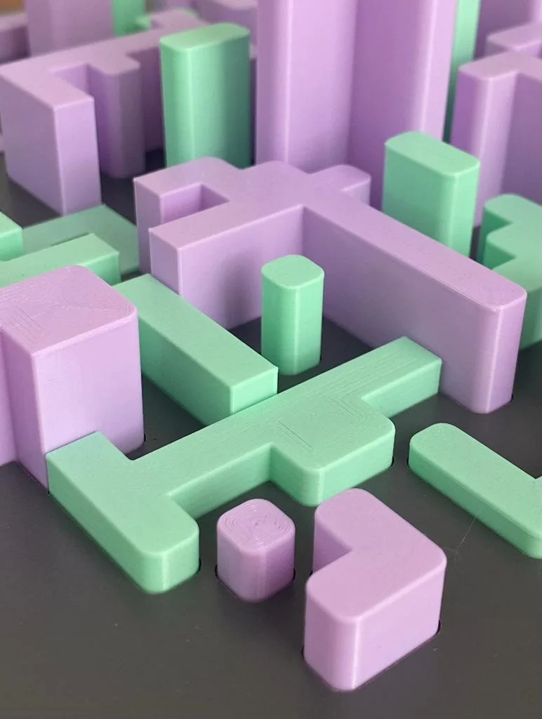 3D QR Code - Green & purple - Small 10" x 10" - Wood and PLA (3D printed plastic) - 2022